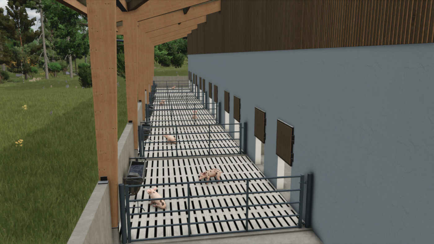 Cette porcherie moderne de style bavarois peut accueillir jusqu’à 200 animaux.