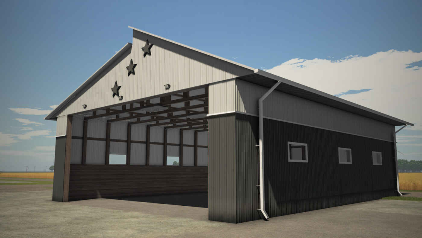 Ancien garage américain où vous pourrez stocker vos machines et vos céréales.