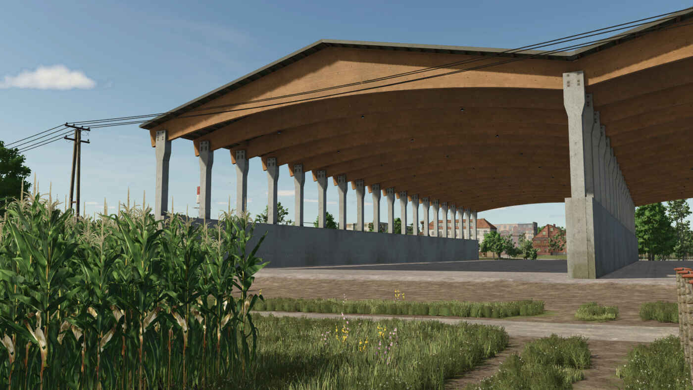 Ensemble de hangars-silos bunkers inspirés d’installations réelles situées à Rheine, conçus pour offrir une grande capacité de stockage
