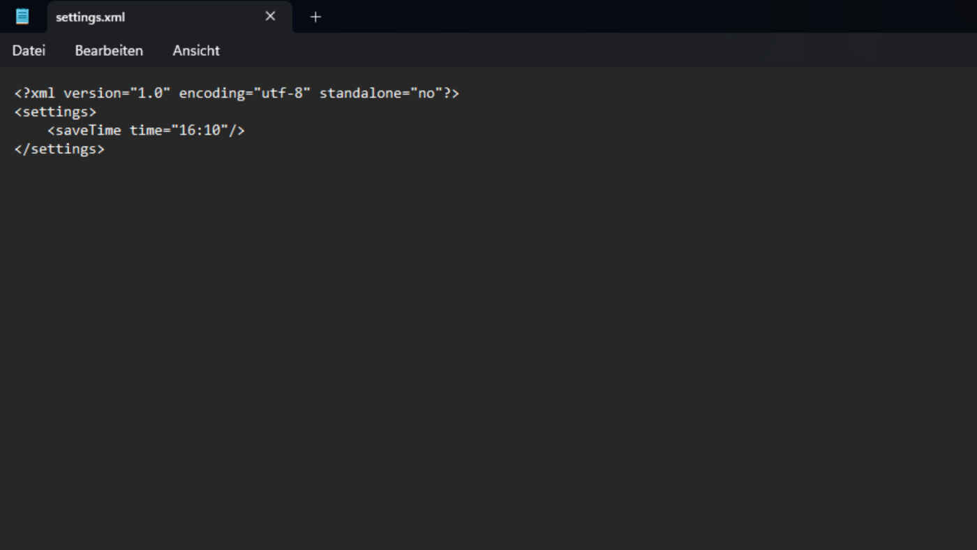 Un fichier nommé settings.xml est créé, dans lequel vous pouvez définir les heures exactes auxquelles le processus de sauvegarde doit se déclencher.