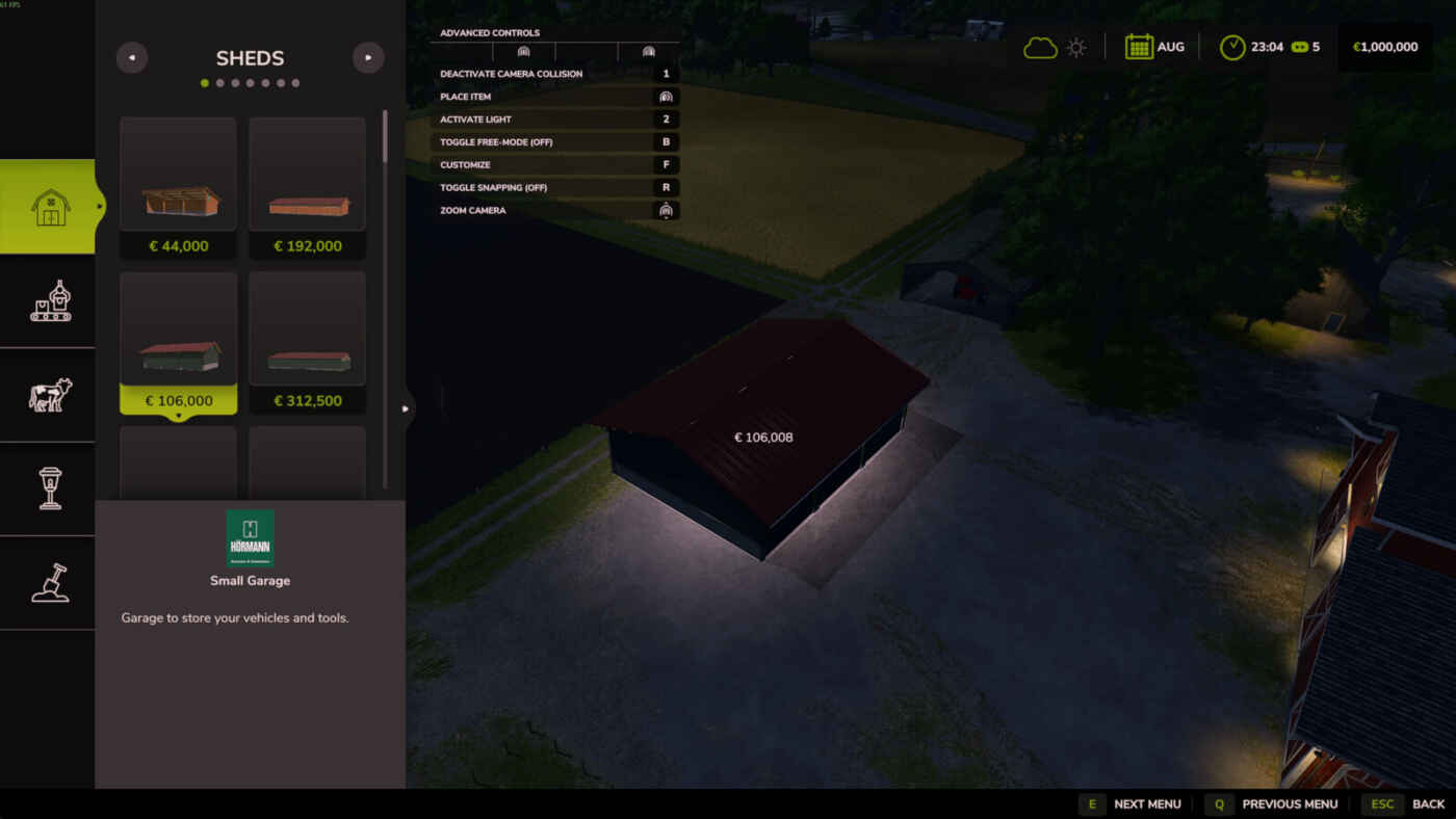 2.) Si vous avez besoin de lumière dans le menu de construction la nuit ou dans les bâtiments sombres, cela est maintenant possible. Vous pouvez allumer et éteindre la lumière à l’aide d’un bouton pour mieux placer les bâtiments ou les objets.