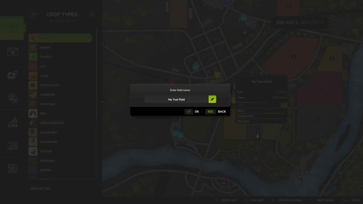 Vous permet de renommer vos champs directement depuis la carte. Cliquez sur un champ que vous possédez et utilisez le bouton « Renommer » pour lui donner un nom personnalisé. Télécharger sur le modhub officiel