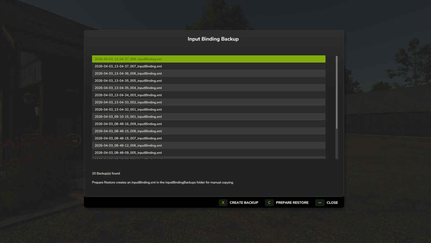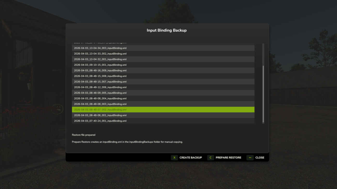 Input Binding Backup – Mod pour Farming Simulator 25