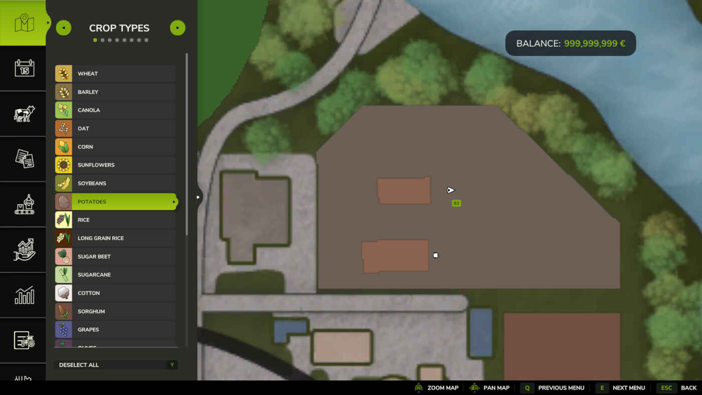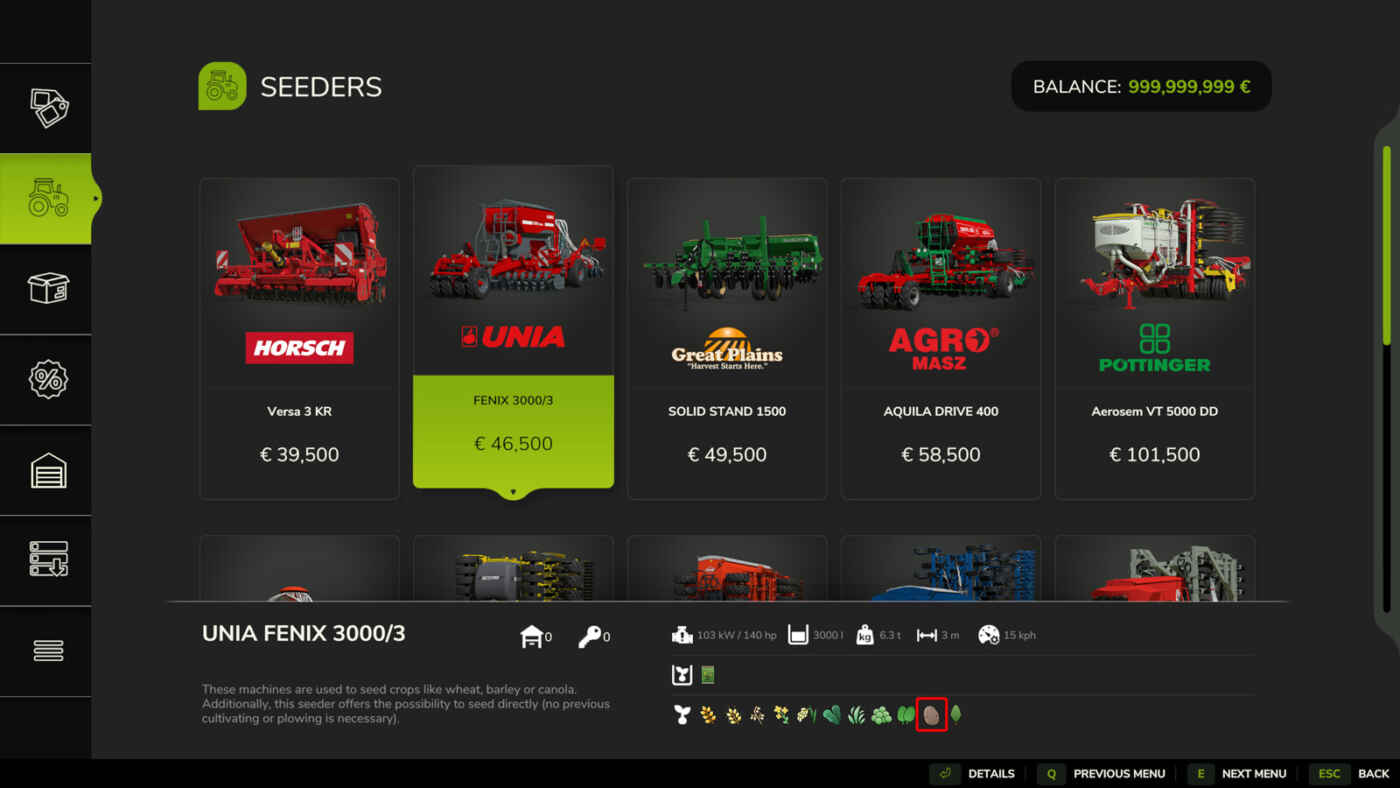 Ce mod supprime la restriction selon laquelle les pommes de terre ne peuvent être plantées que par le planteur de pommes de terre. Les pommes de terre peuvent désormais être plantées avec tous les semoirs monograines et semoirs du jeu qui utilisent les « Catégories » comme type de fruit à graines.