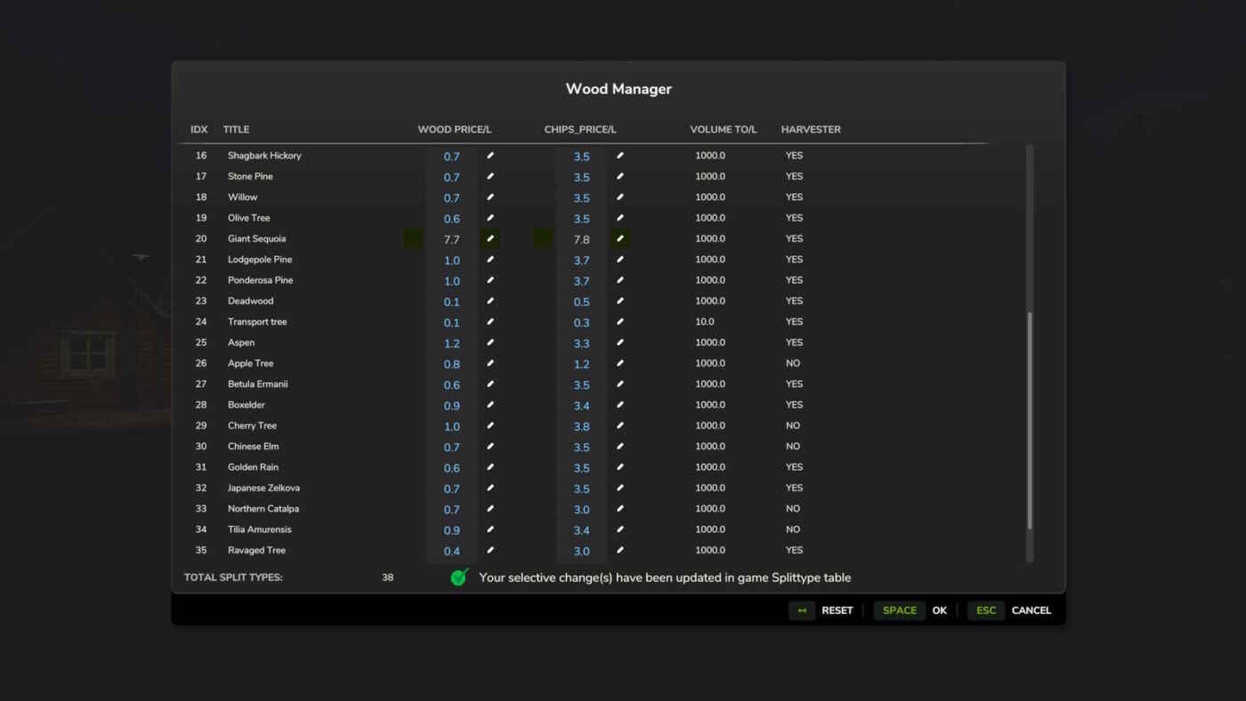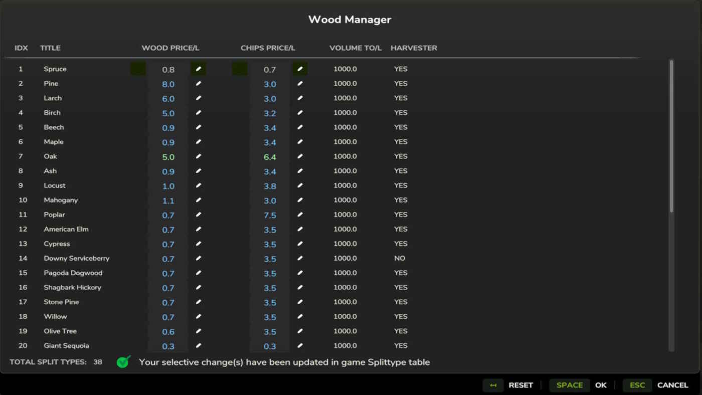 Wood Manager vous permet d’ajuster l’économie de tous les types de bois fendus directement dans le jeu.