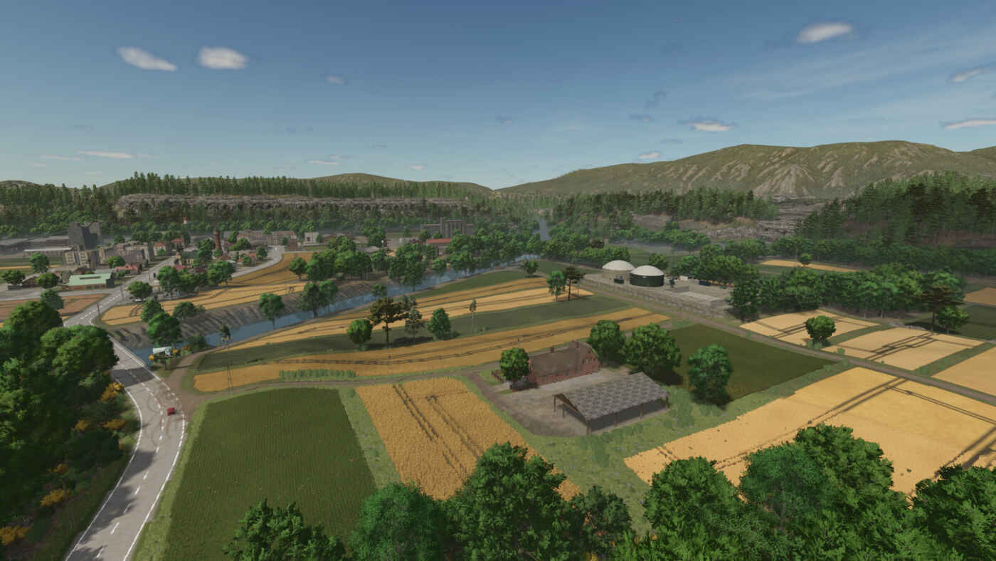 Un endroit entouré de montagnes et traversé par une rivière, où les principales activités sont l’agriculture, la foresterie et l’exploitation minière.