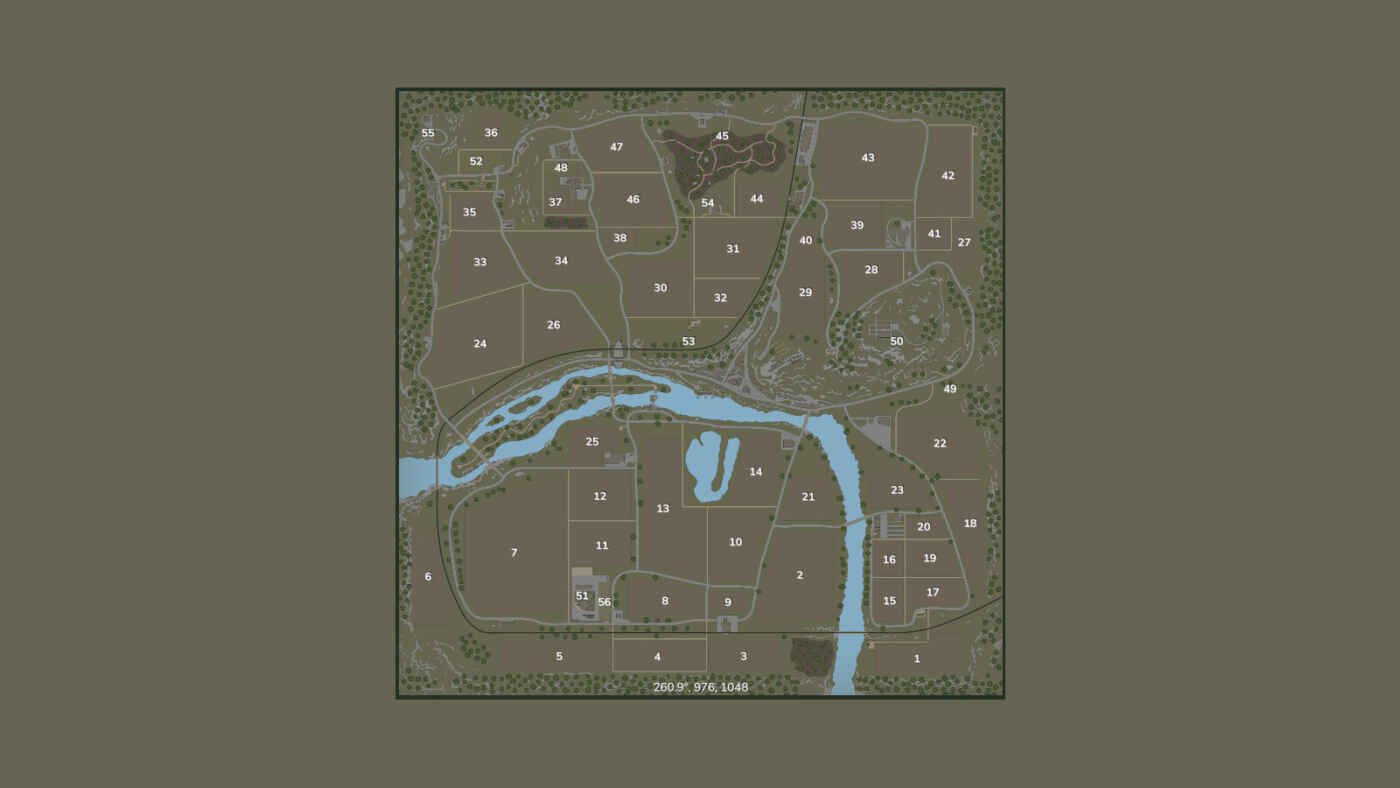 Il y a un total de 56 champs pouvant être achetés, dont 1 forêt.