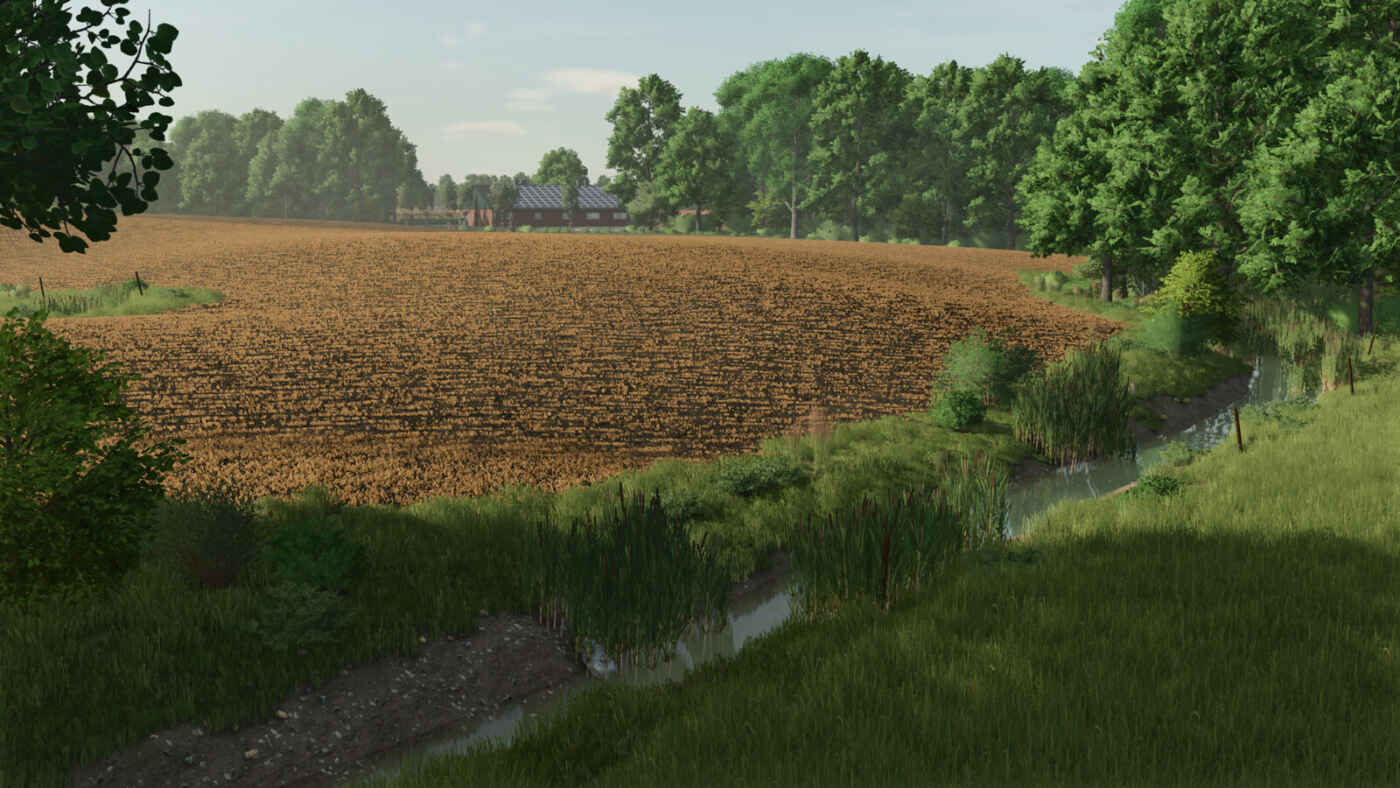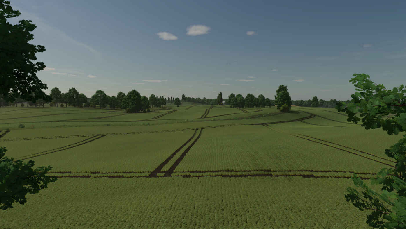 Des éléments paysagers typiques tels que de grands champs arables, des prairies, des forêts et de petits villages définissent la zone de jeu.