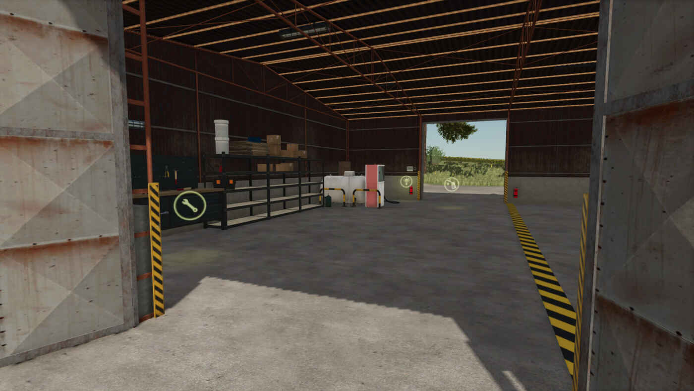 Ce hall comprend un espace atelier dédié à la réparation et à la configuration des véhicules, y compris une station de ravitaillement intégrée avec des prix de carburant réduits.