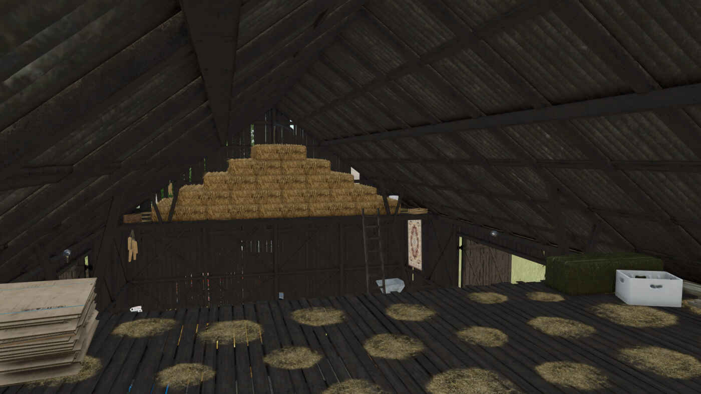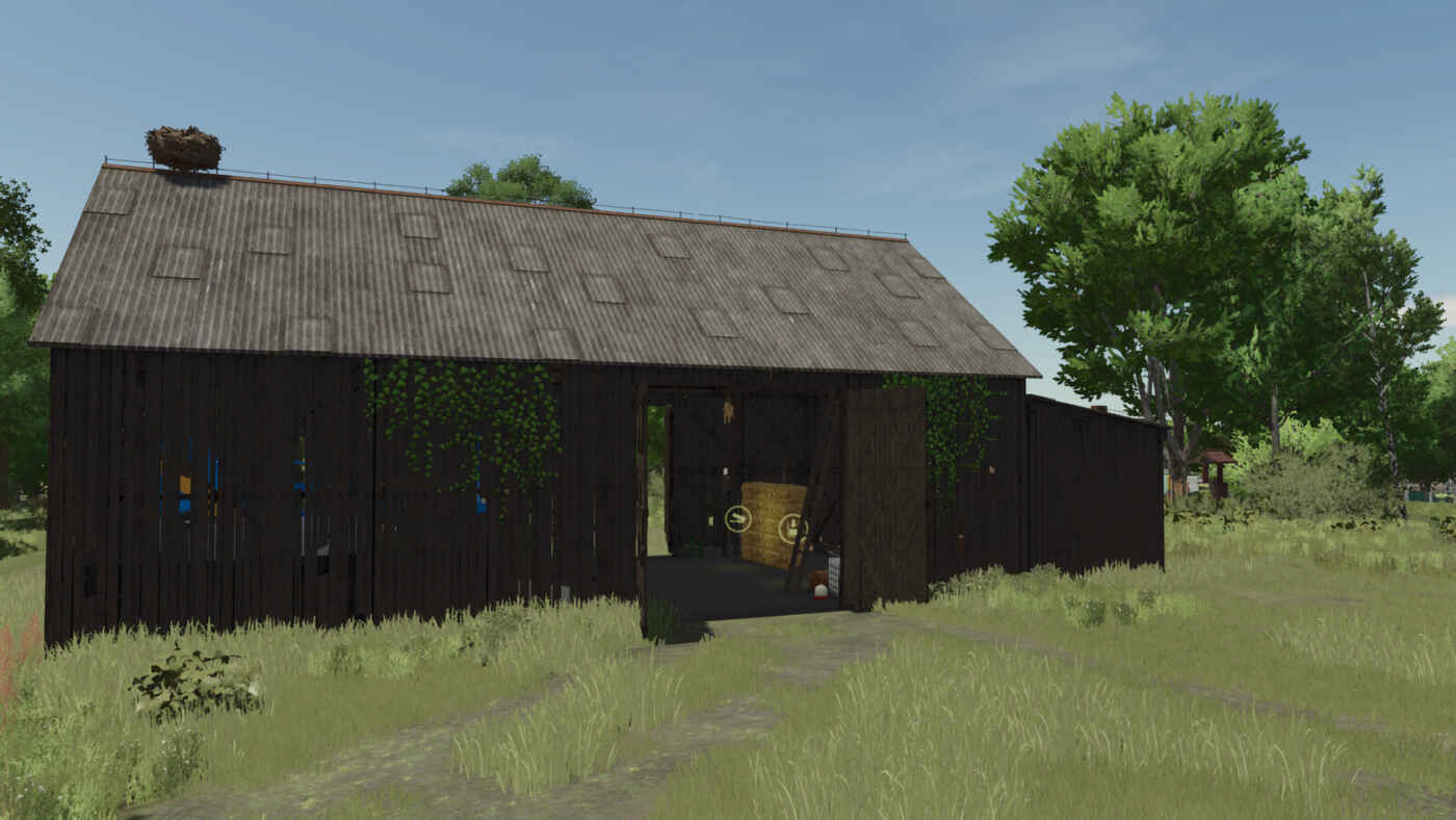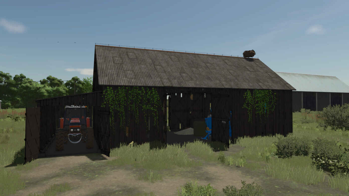 Ancienne grange polie où vous pourrez stocker vos machines ou vos céréales. La grange dispose également d’une option de chargement automatique, où vous pouvez stocker vos balles et cubes.